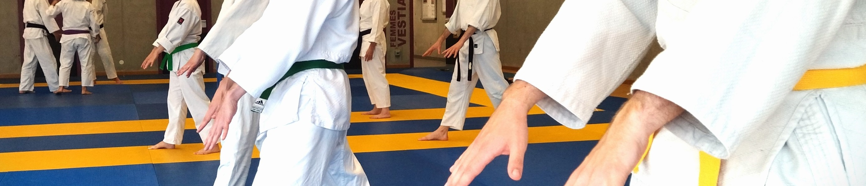 La self-défense : Ensemble de techniques mettant en œuvre les bases apprises dans le kata pour se défendre contre différents types d’attaques (armées ou non). En self défense, nous étudions les déplacements, les atemis (coups frappés, non portés), les clés (luxations), les étranglements, les projections et certaines formes d’immobilisation. La méthode est adaptée et adaptable à tous.